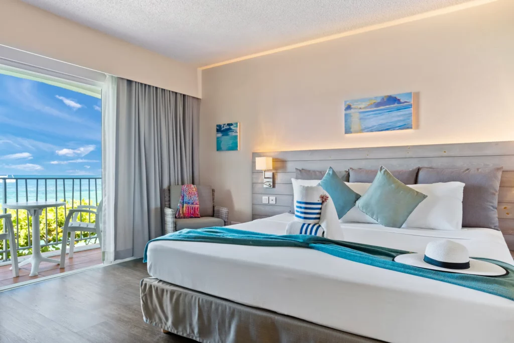 A private balcony or terrace for you to enjoy St. Martin’s turquoise Caribbean waters… and just steps from the beach