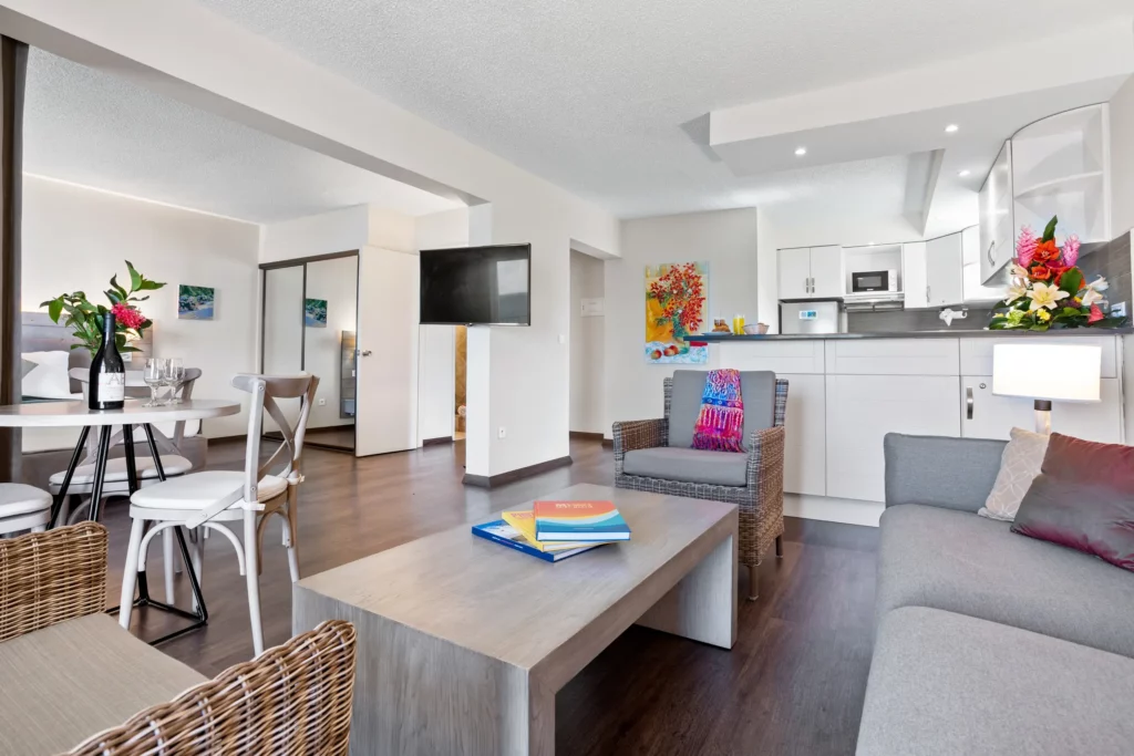Our One Bedroom Suites are generous in size, comfortable for 2 adults and up to 2 children, or 3 adults.