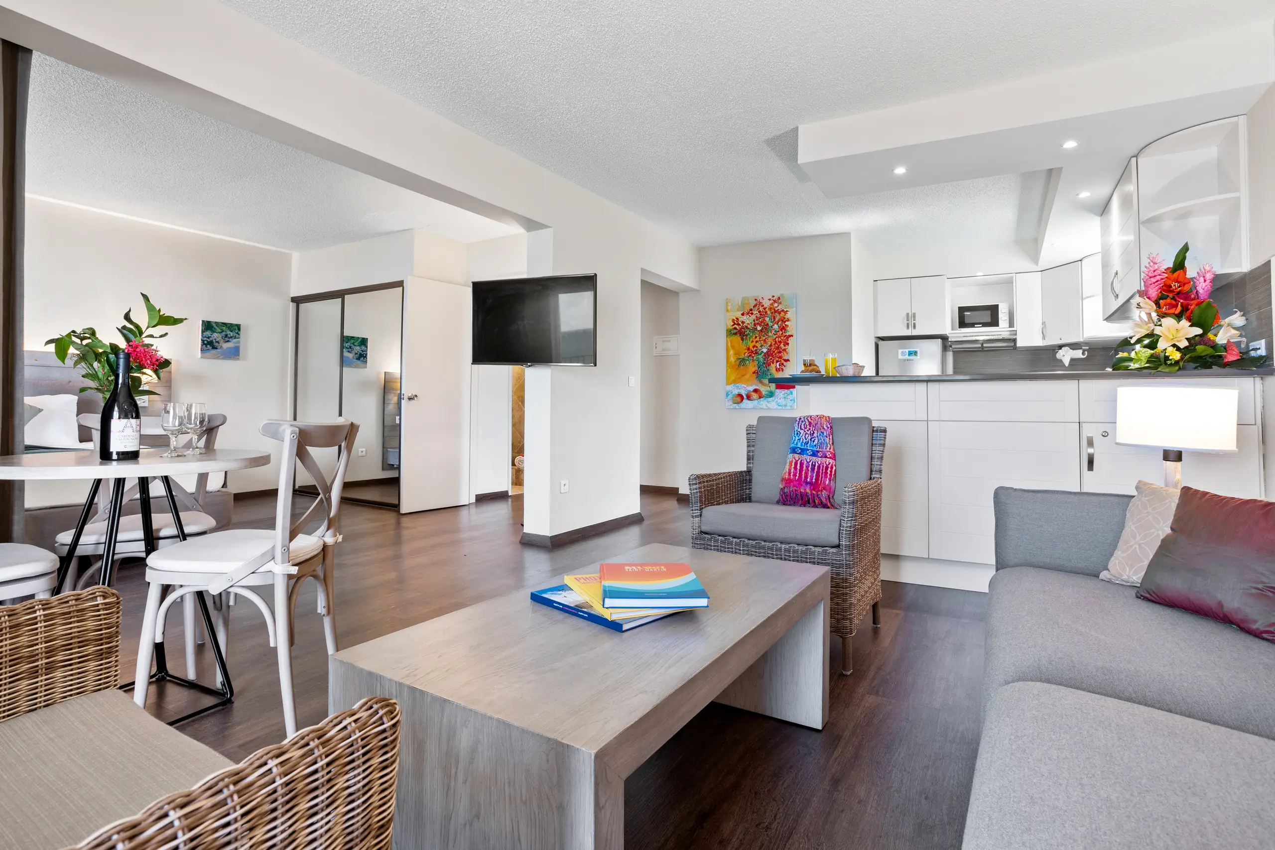 A private balcony or terrace for you to enjoy St. Martin’s turquoise Caribbean waters… and just steps from the beach