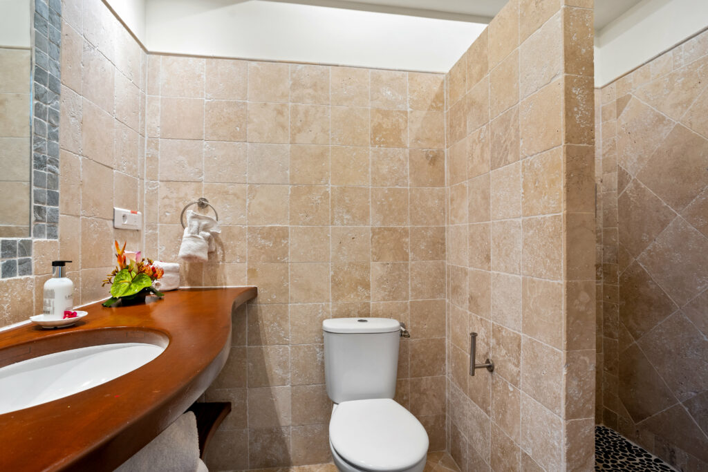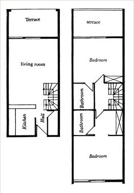 2nd floor, a King bed in the master bedroom, private terrace and two doubles in the 2nd bedroom- each with its own bathroom.