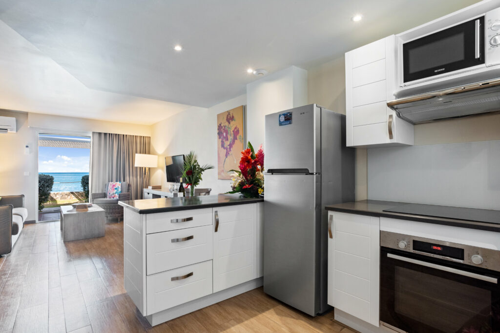 Two level Townhouses, with the ground level being the living area, a modern, fully equipped kitchen, full-size convertible sofa, ½ bath, and private terrace, directly on the beach