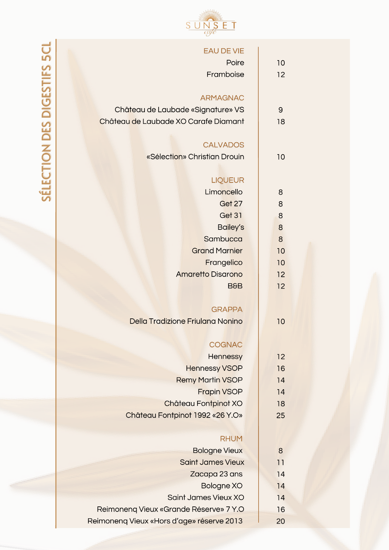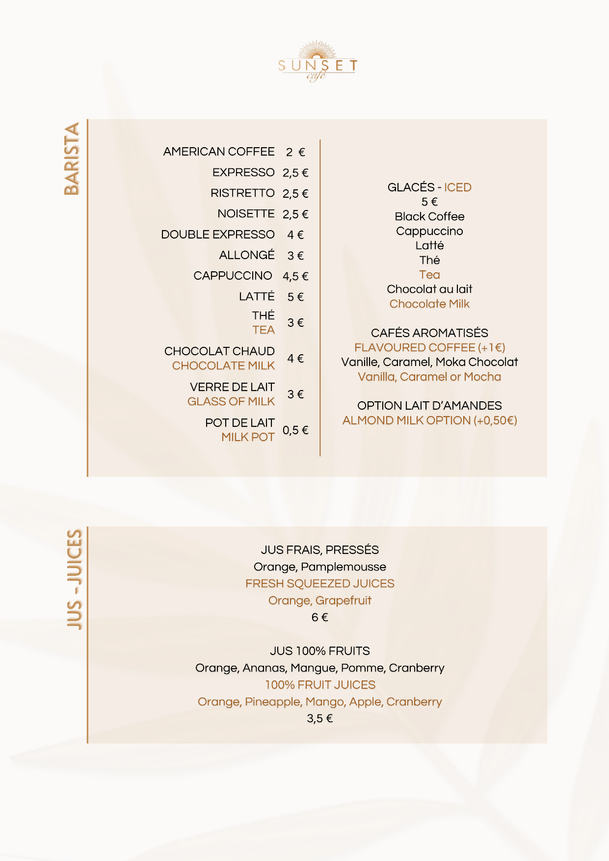 *Sunset Cafe opening hours may vary during the low season (September & October).