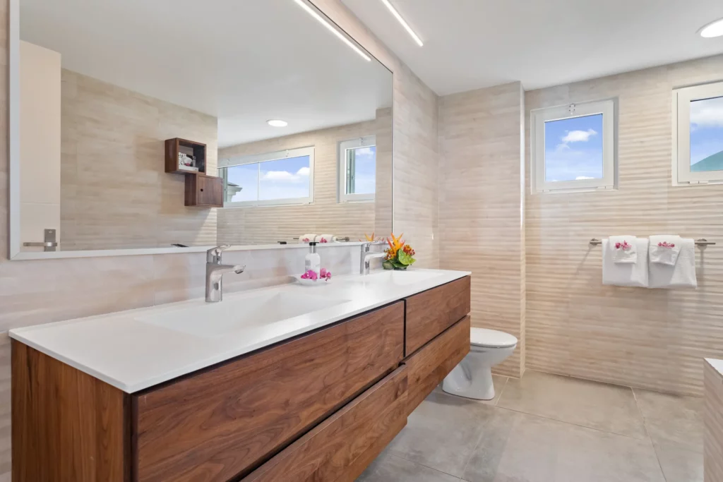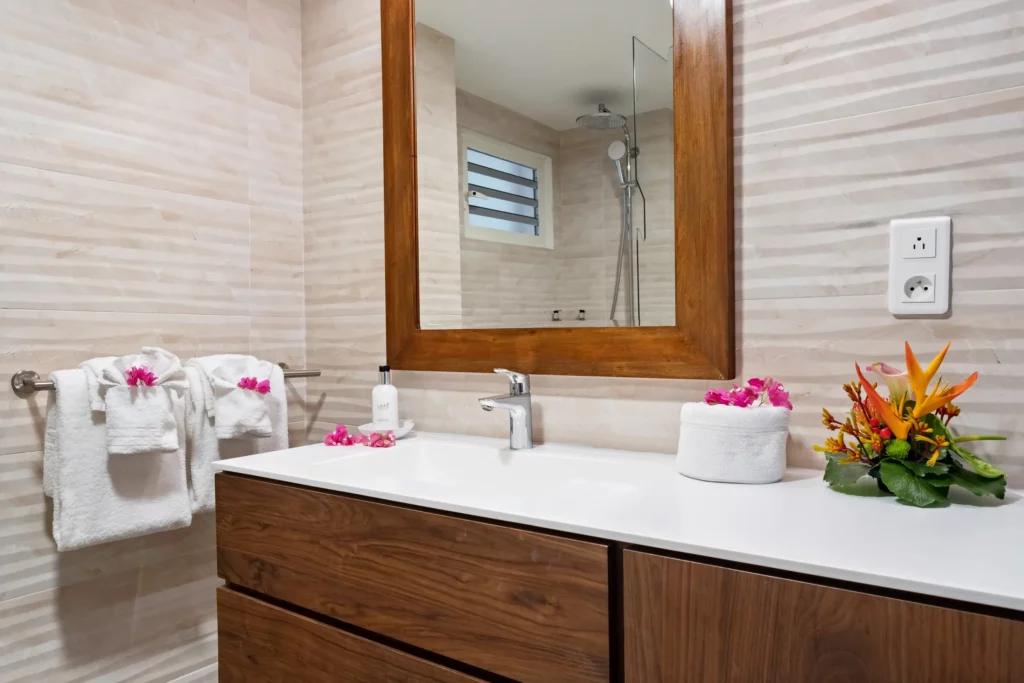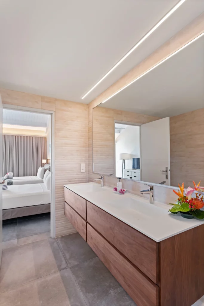 Une suite d’invités sur deux niveaux, vue sur le jardin ou l’océan