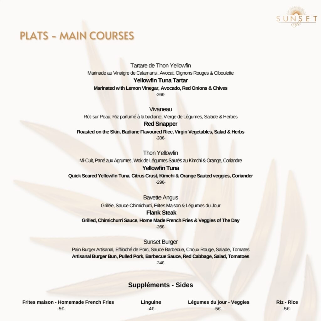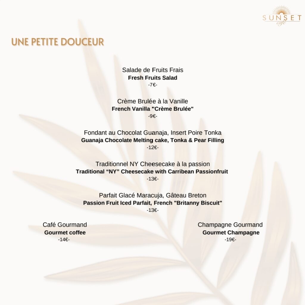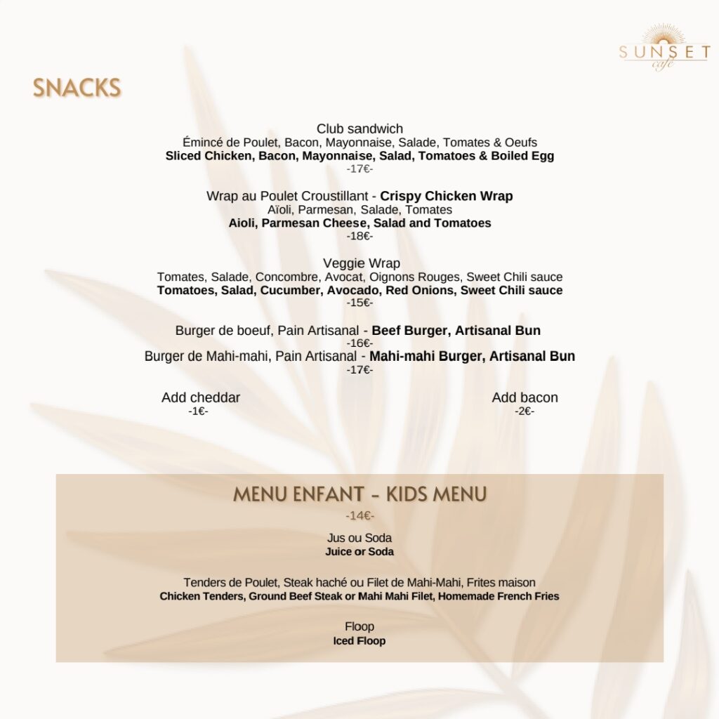 *Les horaires d’ouverture du Sunset Café peuvent varier en basse saison (septembre et octobre).