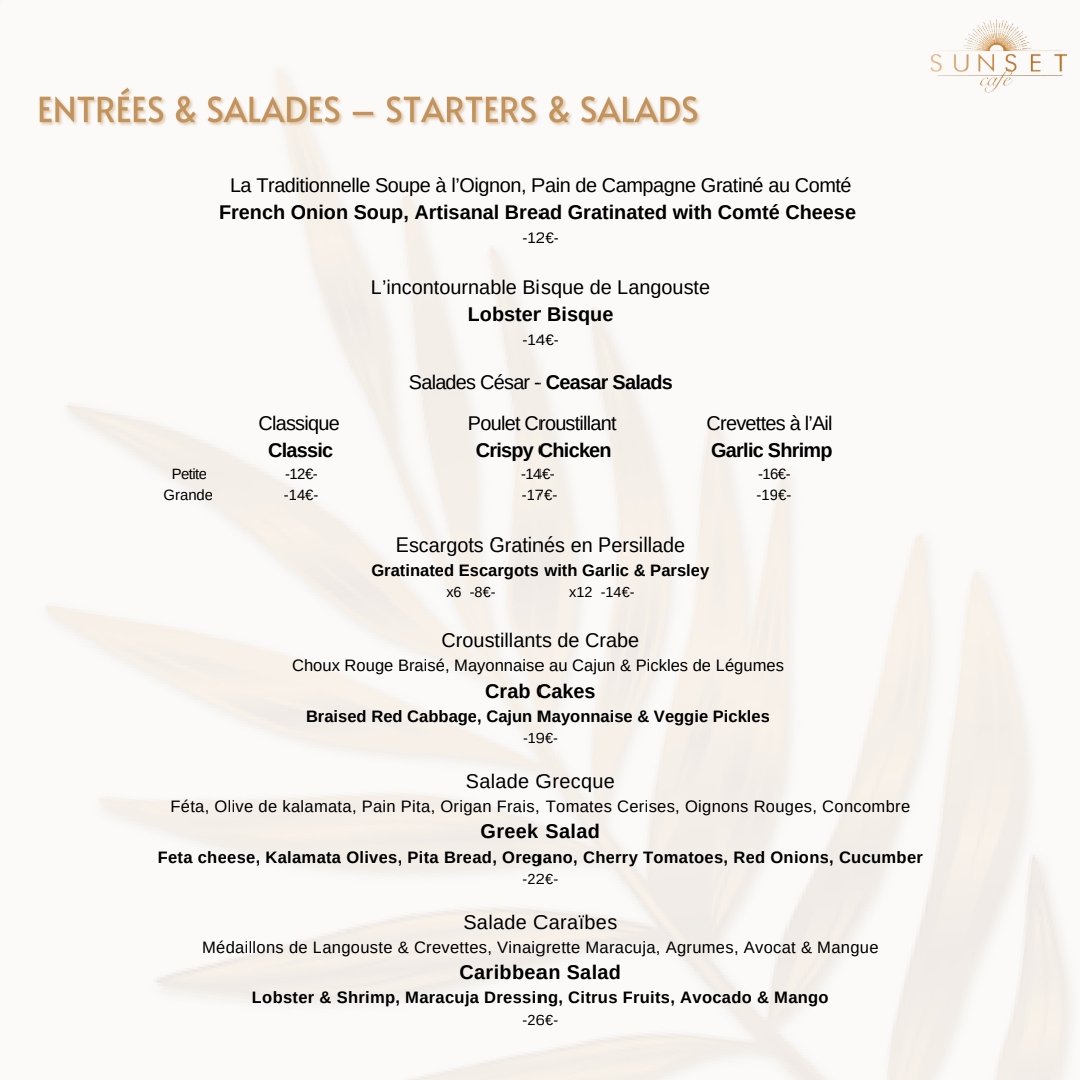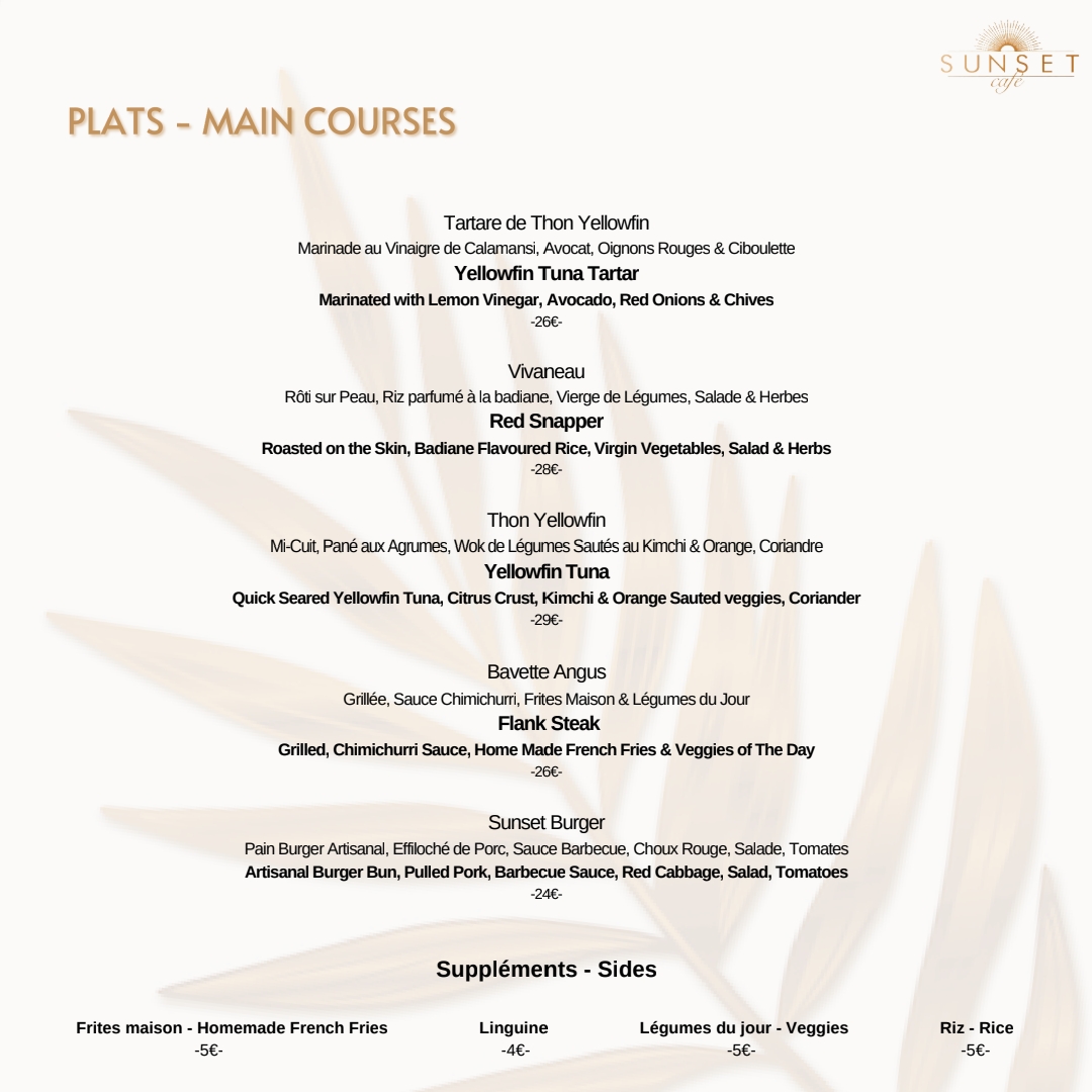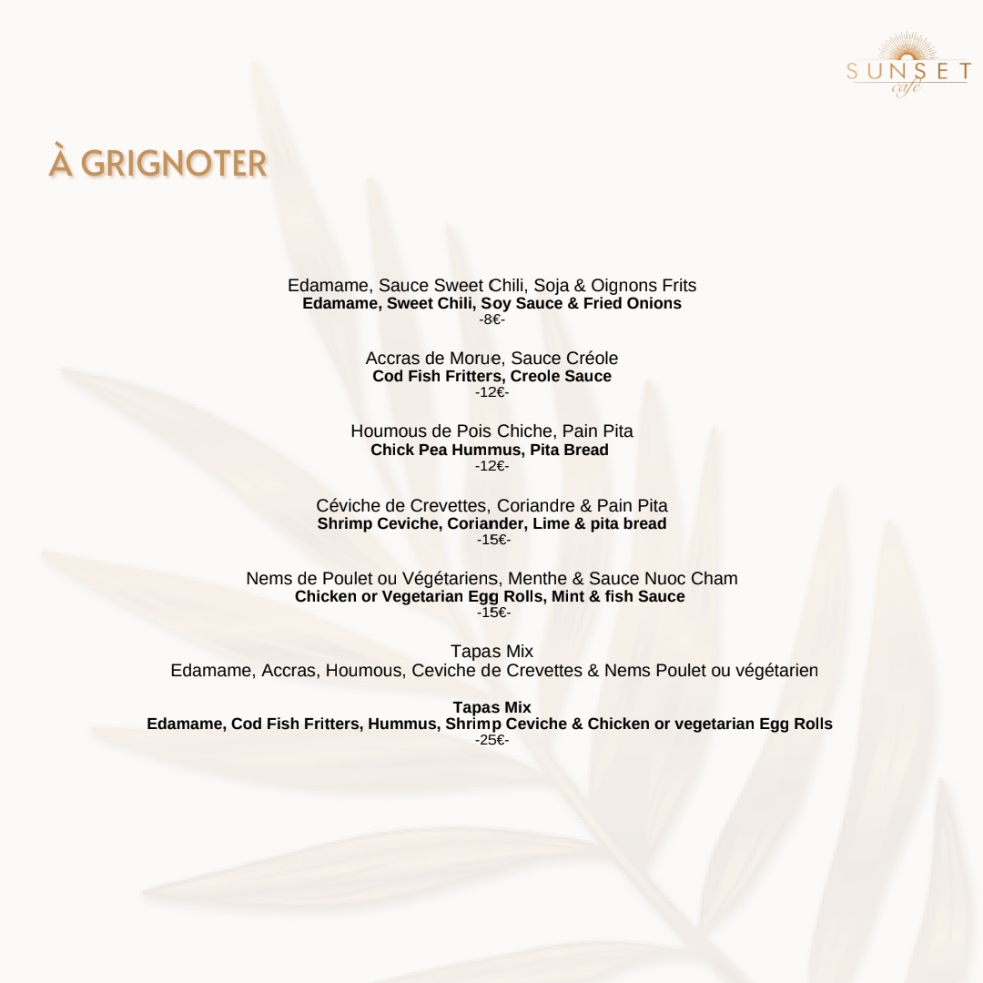 BIENVENUE AU SUNSET CAFÉ & BAR